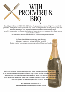 Wijnproeverij en BBQ 10 en 11 oktober